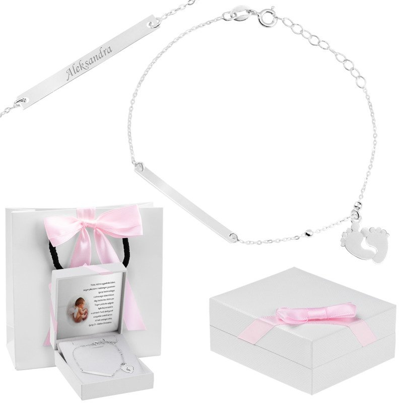 Bransoletka srebrna z indywidualnym grawerem lub dedykacją będzie idealnym rozwiązaniem na prezent. Sprawdzi się na przykład przy okazji Chrzcin, rocznicy ślubu lub urodzin. Taka bransoletka srebrna z grawerem lub dedykacją zyska niepowtarzalny charakter i będzie najmilszą pamiątką po ważnych wydarzeniach.