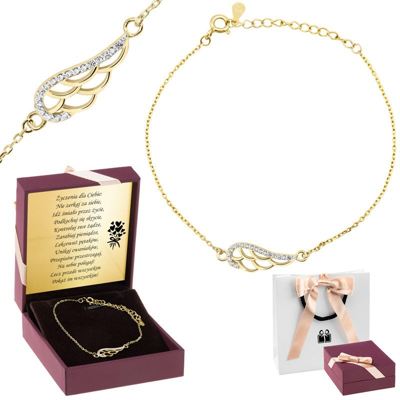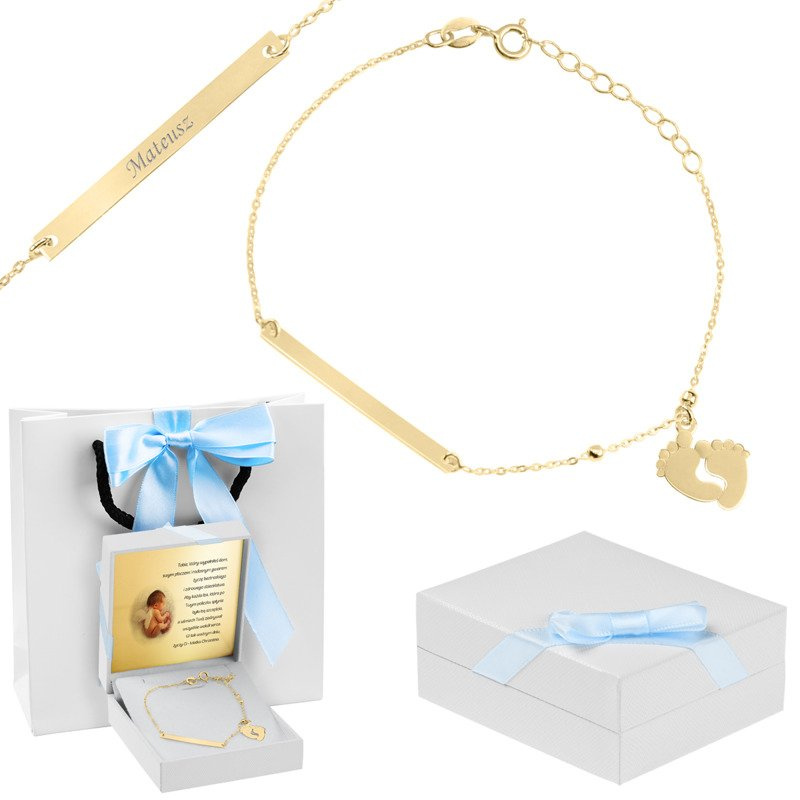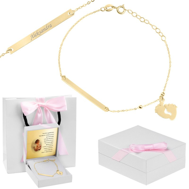 Pozłacana bransoletka srebrna pr. 925 z kuleczkami + tabliczka z dedykacją