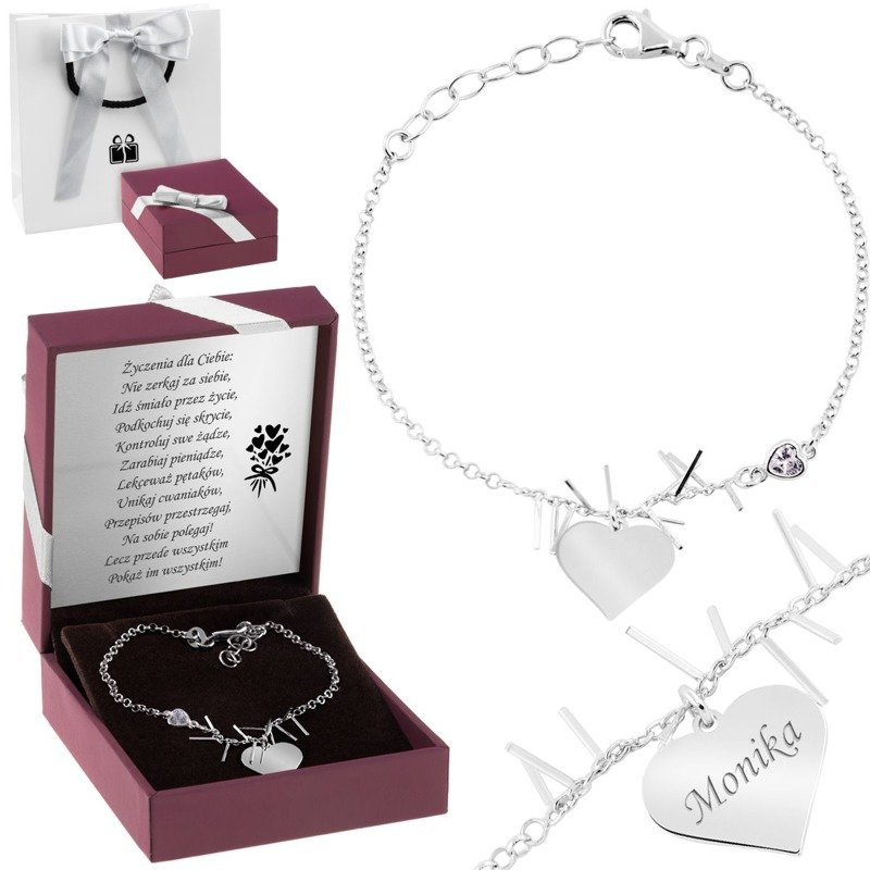 Bransoletka srebrna pr. 925 - zawieszka serduszko Urodziny Rocznica Ślubu Walentynki GRAWER