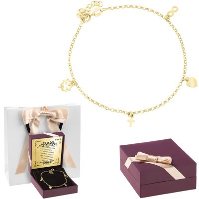 Bransoletka pozłacana koniczynka, serce i kółko pr. 925 Grawer