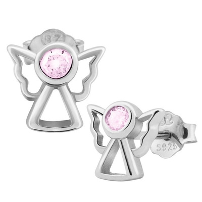Srebrne kolczyki aniołki z różową cyrkonią pr. 925
