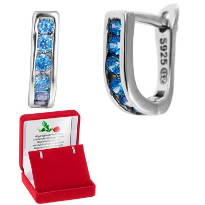 Srebrne kolczyki pr 925 cyrkonia jasnoniebieska Dedykacja