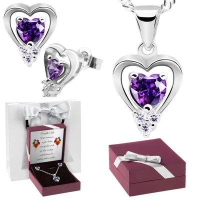 Srebrny komplet wisiorek i kolczyki pr 925 serce z białą cyrkonią Dedykacja