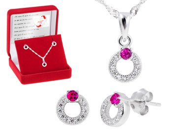 Komplet biżuterii pr. 925 rubinowa cyrkonia DEDYKACJA