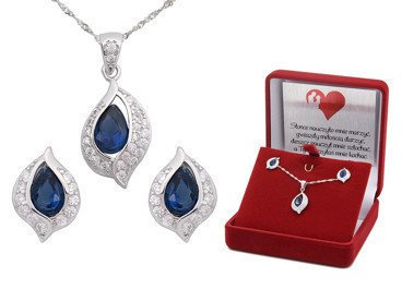 Komplet biżuterii pr. 925 z okrągłą zawieszką i szafirową cyrkonią DEDYKACJA