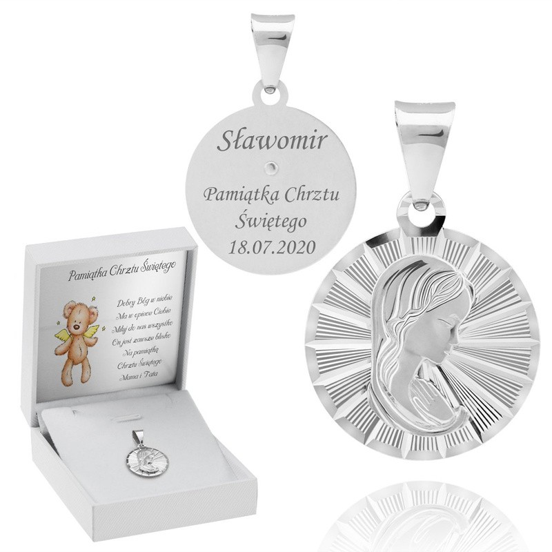Srebrny Medalik Matka Boska Częstochowska Z Grawerem