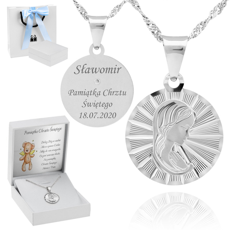 Srebrny Medalik Z Jezusem Na Chrzest I Komunię Grawer