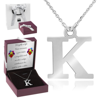 Naszyjnik celebrytka litera K srebro pr. 925 z dedykacją