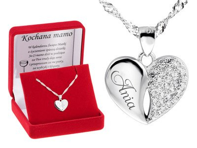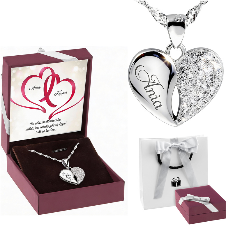 Srebrny naszyjnik Podwójne Serce z cyrkoniami + grawer imienia lub daty | srebro próby 925 + dedykacja w pudełku