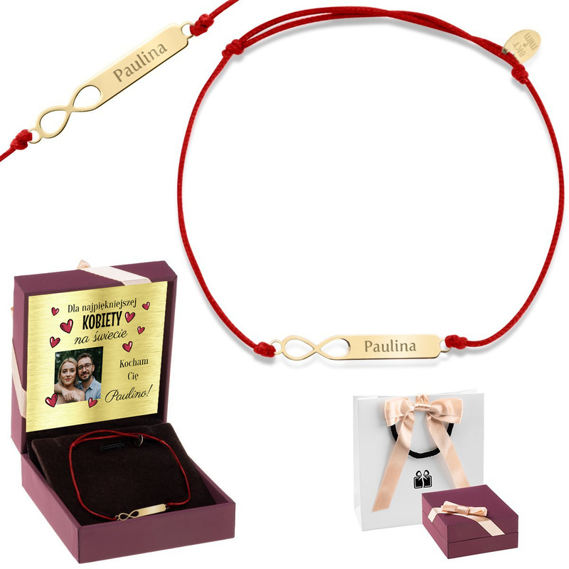 Bransoletka sznurkowa czerwona nieskończoność złoto 333 z grawerem