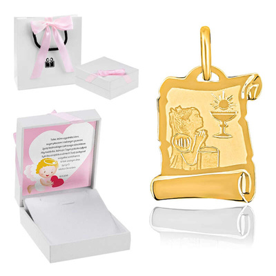 Medalik dla dziewczynki / Prezent na Komunię / Chrzest / Zestaw pudełeczko / Własna dedykacja / Medalik Hostia