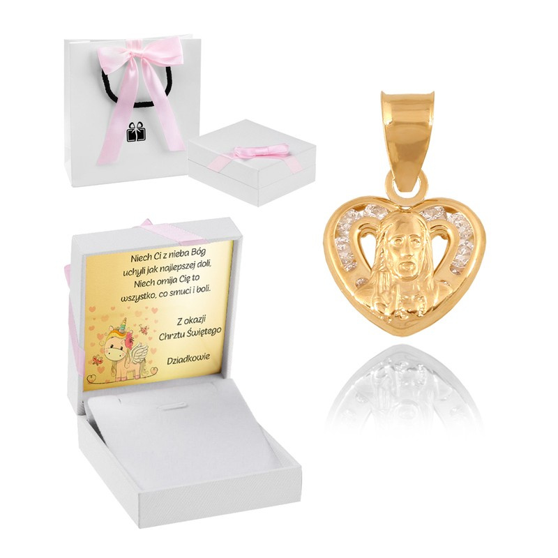 Medalik ze złota / Matka Boska / Własna dedykacja / Złoto pr. 585 / Pamiątka na Komunię dla dziewczynki