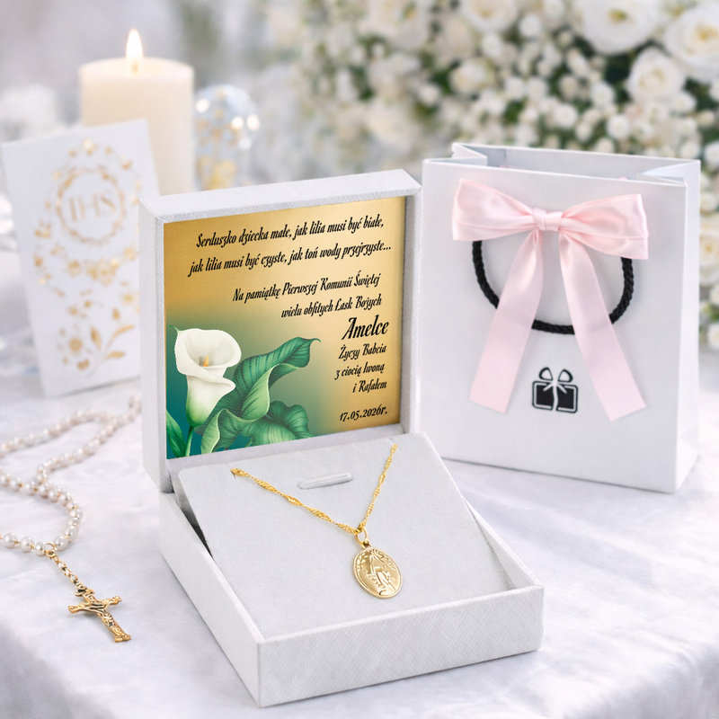 Komplety złotej biżuterii z dedykacją i grawerem | Złota biżuteria cieszy się niezwykłą popularnością wśród upominków na wyjątkowe okazje, a szczególnie chętnie wybierane są komplety ze złota, które stanowią okazały podarek. Komplety biżuterii ze złota są wręczane z okazji chrzcin, urodzin, rocznicy ślubu, a także zupełnie bez okazji, gdyż wspaniale wyrażają uczucia. By biżuteria była jeszcze bardziej osobista i niezwykła, można przyozdobić ją indywidualnym grawerem lub wyposażyć w efektowne pudełeczko z pamiątkową dedykacją – wszystkie te rozwiązania oferujemy w standardzie do zakupionych kompletów biżuterii ze złota. Grawerowany komplet złotej biżuterii będzie nie tylko wyjątkowym upominkiem dla bliskiej osoby, ale też przedmiotem o pamiątkowym charakterze. Grawerunek sprawia, że biżuteria może być jeszcze bardziej osobista i niepowtarzalna. Miłym dodatkiem do kompletu biżuterii jest także prezentowe opakowanie wraz z dedykacją. Tabliczka z miejscem na dedykację oferuje znacznie większą przestrzeń niż biżuteryjne elementy, dlatego to właśnie na niej można zawrzeć życzenia, ulubione cytaty, sentencję lub innego typu treść, która sprawi, że prezent zyska na oryginalności. W asortymencie naszego sklepu z upominkami można znaleźć szeroki wybór kompletów biżuterii z czternastokaratowego złota – to kruszec popularnej próby, która cieszy się dużym zainteresowaniem z uwagi na doskonałą jakość. Biżuteria dostępna w tym dziale to produkty najwyższej klasy, które przypadną do gustu każdemu.