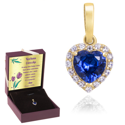 Zawieszka złote serca z cyrkoniami z dedykacją w pudełku / prezent dla kobiety na Walentynki, rocznicę / pr. 585