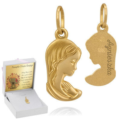 Medalik ze złota / Matka Boska / Własna dedykacja / Złoto pr. 585 / Pamiątka na Komunię dla dziewczynki