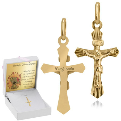 Złoty prostokątny medalik próba 585 Matka Boska Chrzest Komunia Bierzmowanie Grawer