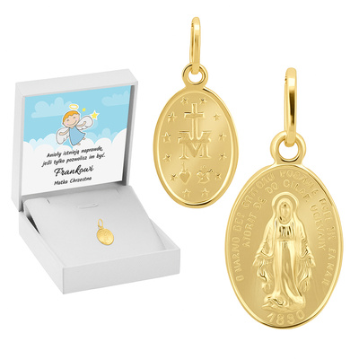 Medalik ze złota / Matka Boska / Własna dedykacja / Złoto pr. 585 / Pamiątka na Komunię dla dziewczynki