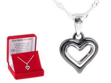 Srebrny komplet z wisiorkiem Serce Czarna Ceramika i SREBRO 925 DEDYKACJA
