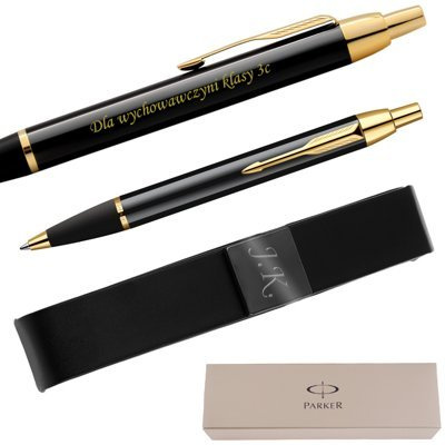 Długopis Parker IM Czarny GT z grawerem i etui eko-skóra