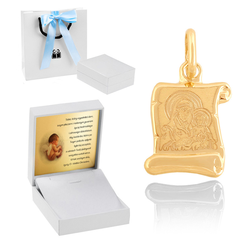 Medalik ze złota / Matka Boska / Własna dedykacja / Złoto pr. 585 / Pamiątka na Komunię dla dziewczynki