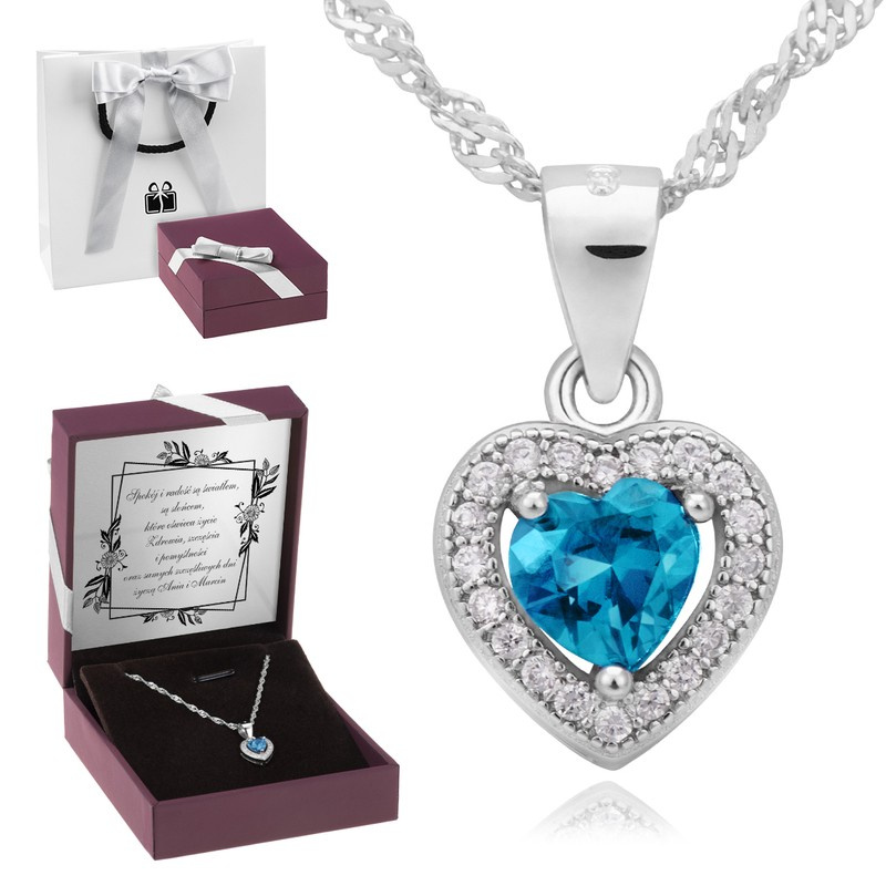 Srebrna zawieszka pr. 925 serce z akwamarynową cyrkonią Dedykacja