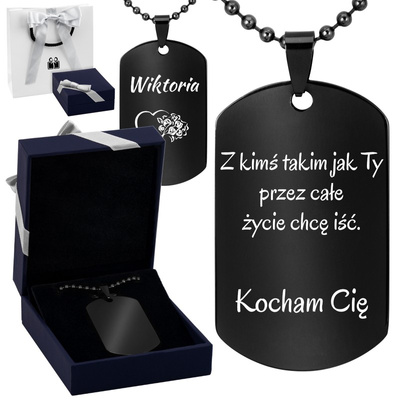 Czarny nieśmiertelnik ze stali szlachetnej z grawerem i dedykacją