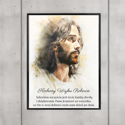 Obraz religijny w ramie 40x30 cm – Plakat z cytatem biblijnym + aluminiowa ramka ze szkłem