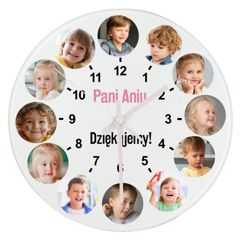 Zakończenie roku: szklany zegar ścienny z foto i dedykacją