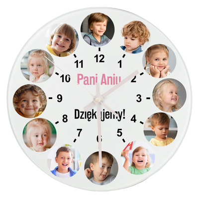 Dzień Nauczyciela: szklany zegar ścienny z foto i dedykacją