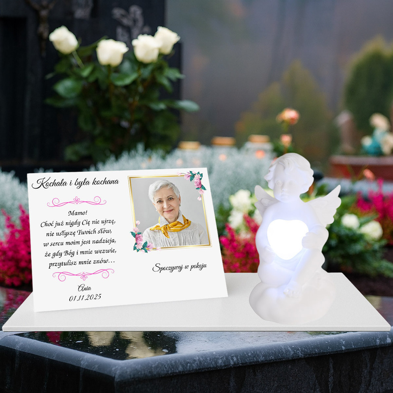 Aniołek z sercem LED MULTIKOLOR i tabliczka z dedykacją