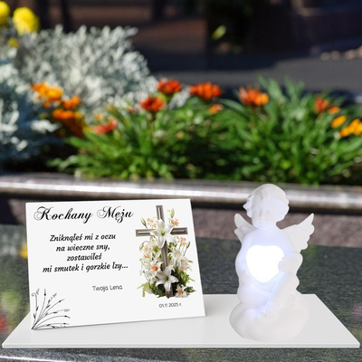 Figurka aniołka z sercem LED MULTIKOLOR i tabliczką z personalizacją