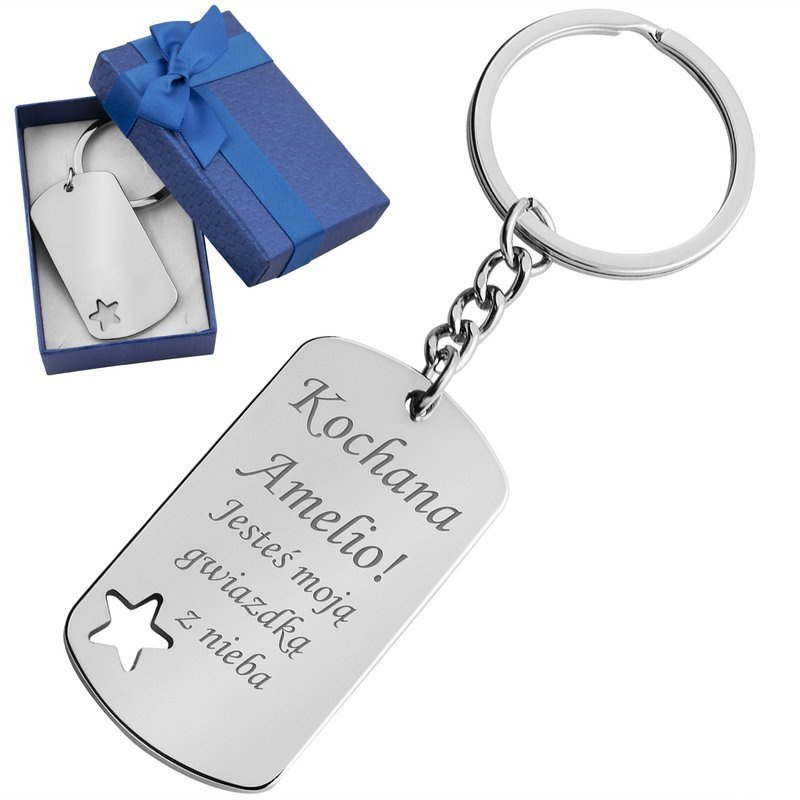 Brelok breloczek do kluczy Nieśmiertelnik z gwiazdką z Grawerem