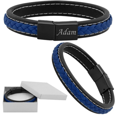 Bransoletka męska niebiesko-czarna pleciona z grawerem 316L
