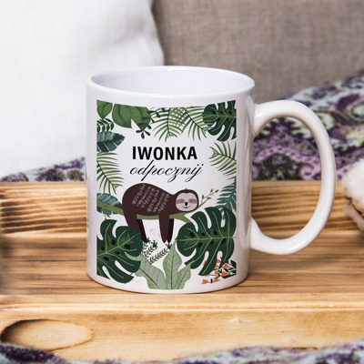 Kubek Leniwiec dla śpiocha z imieniem i śmiesznym nadrukiem