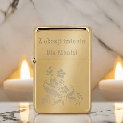 Złota zapalniczka benzynowa Tasman z grawerem, benzyną i kamieniami