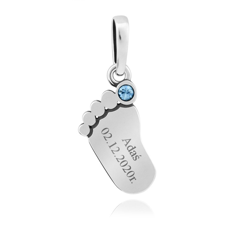 Zawieszka srebrna stópka dziecka z grawerem / pr. 925