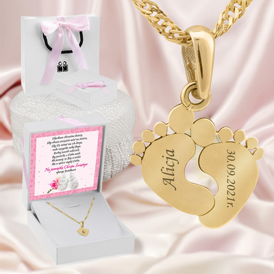 Zawieszka srebrna stópka dziecka z grawerem i łańcuszkiem/ pr. 925