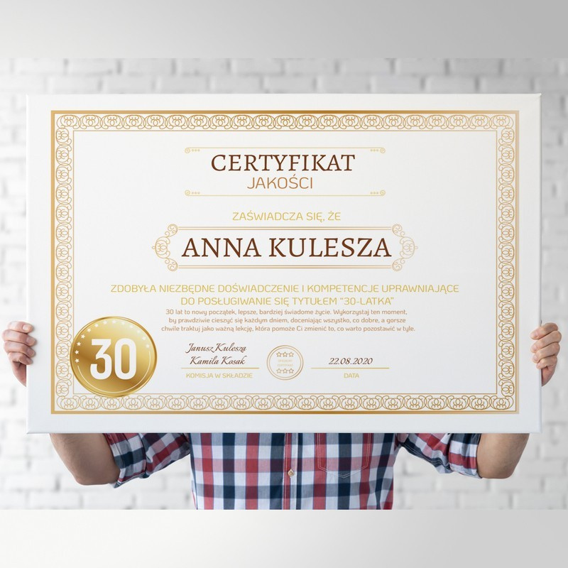 Fotoobraz na urodziny / Certyfikat jakości / Prezent do salonu / 30x40 cm