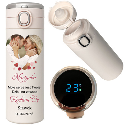 Kubek termiczny z wyświetlaczem LED – personalizowany nadruk na Dzień Kobiet 500 ml