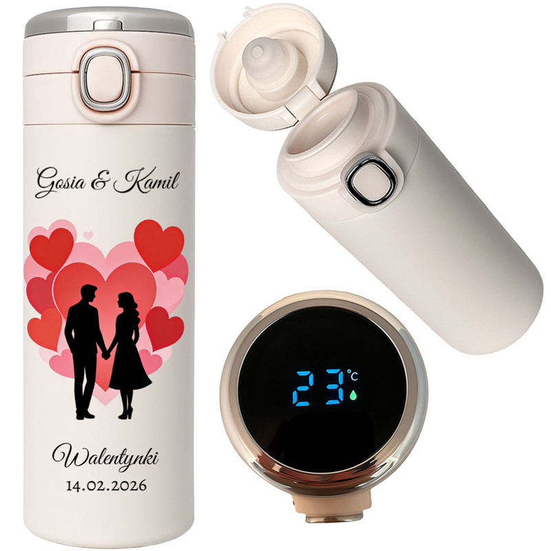 Walentynki: Kubek termiczny LED z nadrukiem UV dla par personalizowany