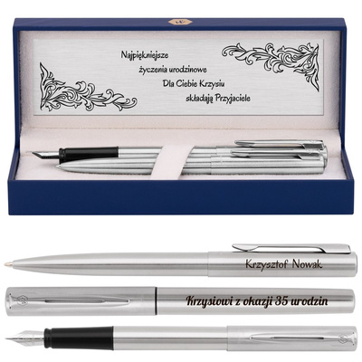 Prezent z Grawerem / Zestaw długopis + pióro / Waterman Graduate / Pudełko z Dedykacją / Prezent na Urodziny / Imieniny