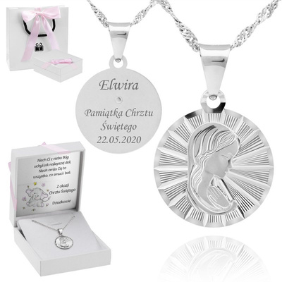 Srebrny medalik Matka Boska z dzieciątkiem Dedykacja