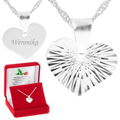 Na Walentynki: wisiorek serce z diamentowym wzorem 925 z grawerem