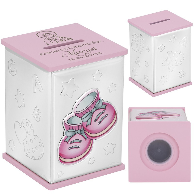 Skarbonka dla Dziecka / Własny Grawer / Prezent na Chrzest dla dziewczynki / Stal posrebrzana