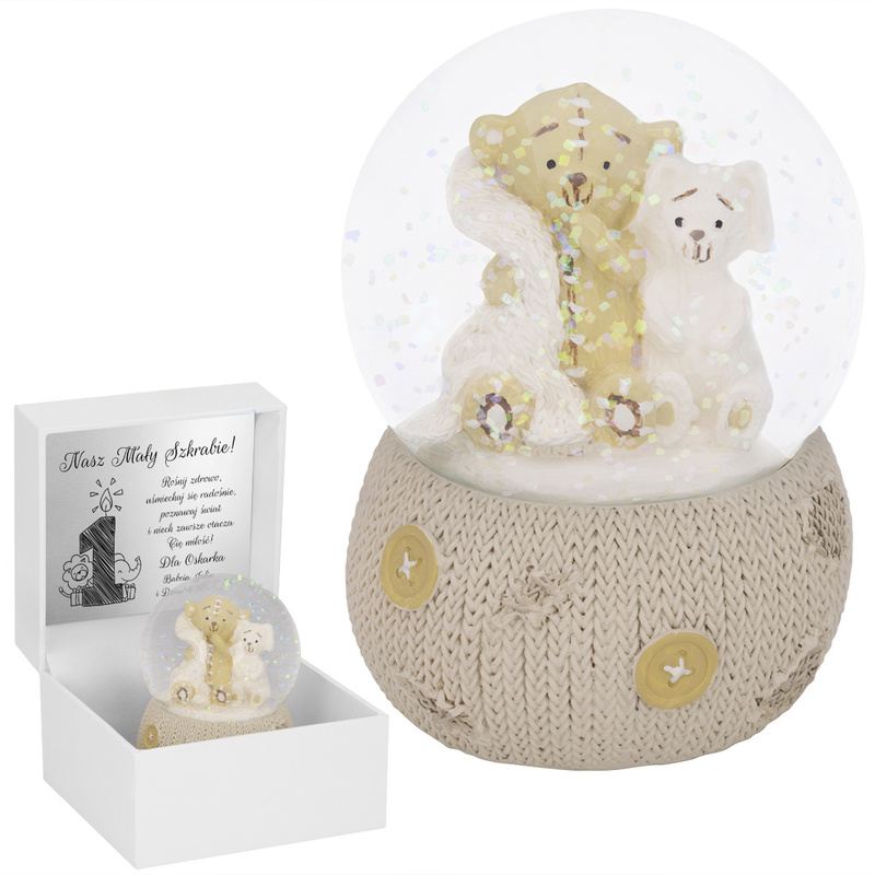 Miś w kuli śnieżnej / Prezent na chrzest / Personalizacja / Prezent na roczek dla chłopca