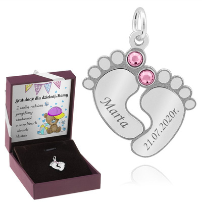 Na chrzest i roczek: wisiorek stópki srebro 925 z grawerem