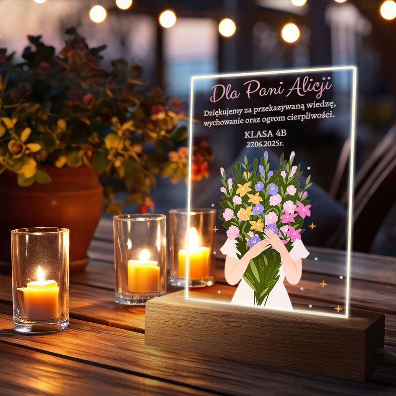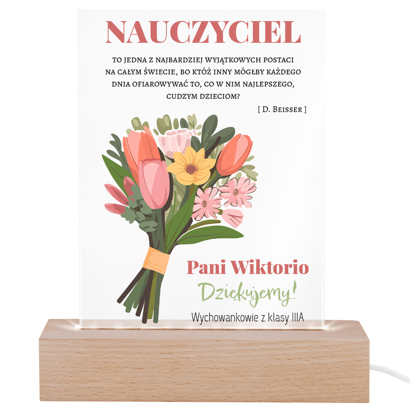 Podświetlana ramka LED z dedykacją i zdjęciem – Prezent dla Nauczyciela