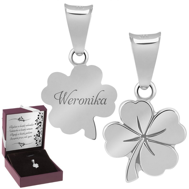 Wisiorek srebrna czterolistna koniczynka 925 z grawerem laserowym