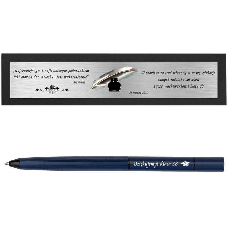 Granatowy długopis i ołówek 2w1 / Prezent dla nauczyciela, ucznia w pudełku / Prezent z Grawerem i Dedykacją