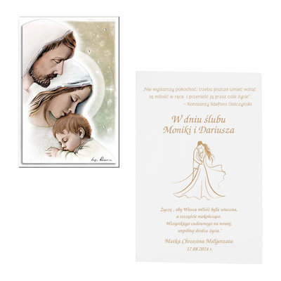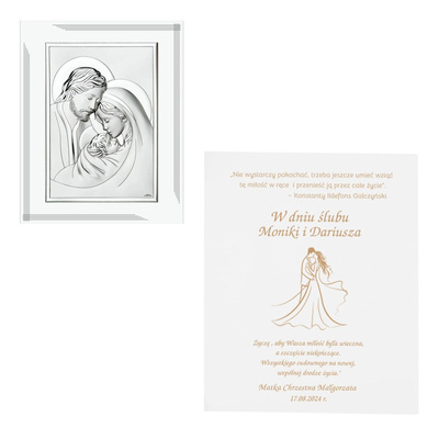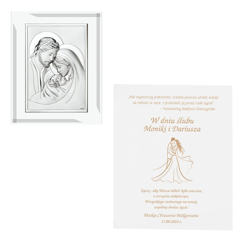 Na ślub: posrebrzany obrazek Świętej Rodziny z grawerem